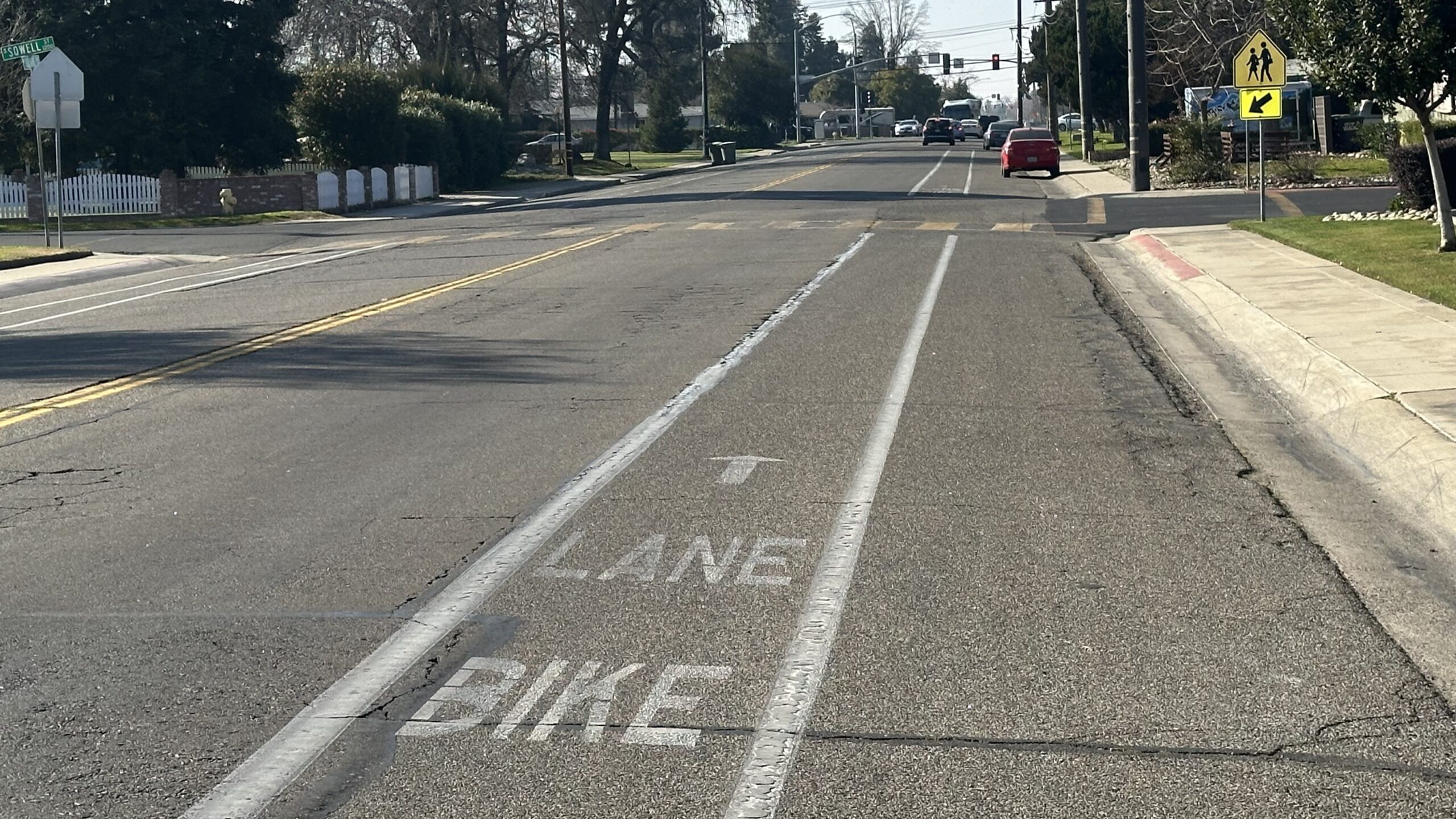 Class II Bike Lanes along Tulare Avenue near Mooney Boulevard as it looked in January 2025